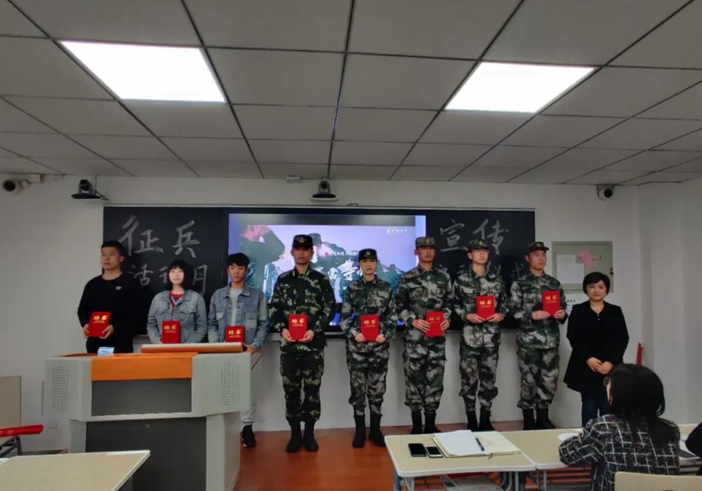 活动伊始,一起观看征兵宣传视频,随后,由李谨辰书记向征兵宣传员颁发聘书,并提出表扬。邀请退伍老兵刘琳、刘京伟两位同学发表自己当兵时的感受,他们还讲述了学校方面和国家方面对大学生入伍的重视,国家也给了大学生好的政策和优厚的待遇,进一步激发大学生参军报国热情。最后李书记提出,党和国家为我们创造了今天的幸福生活,我们就要用我们的力量为祖国明天的发展和安全作出努力,积极参军,保家卫国。本次活动以签名仪式结束。