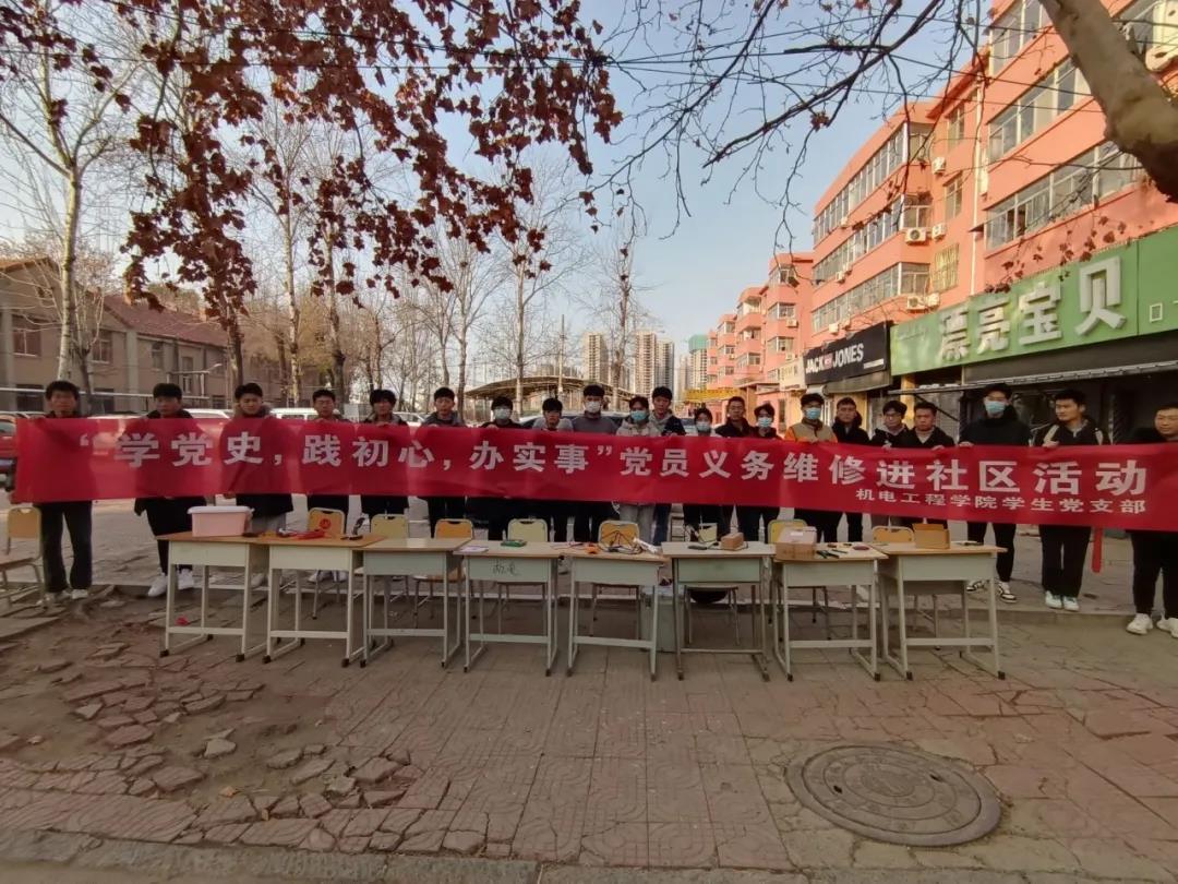 为充分发挥党员先锋模范作用,弘扬志愿服务精神,引领广大党员服务社会、奉献社会,2021年12月12日,我院学生党支部在菏泽学院家属区开展“学党史,践初心,办实事”党员义务维修进社区活动。
