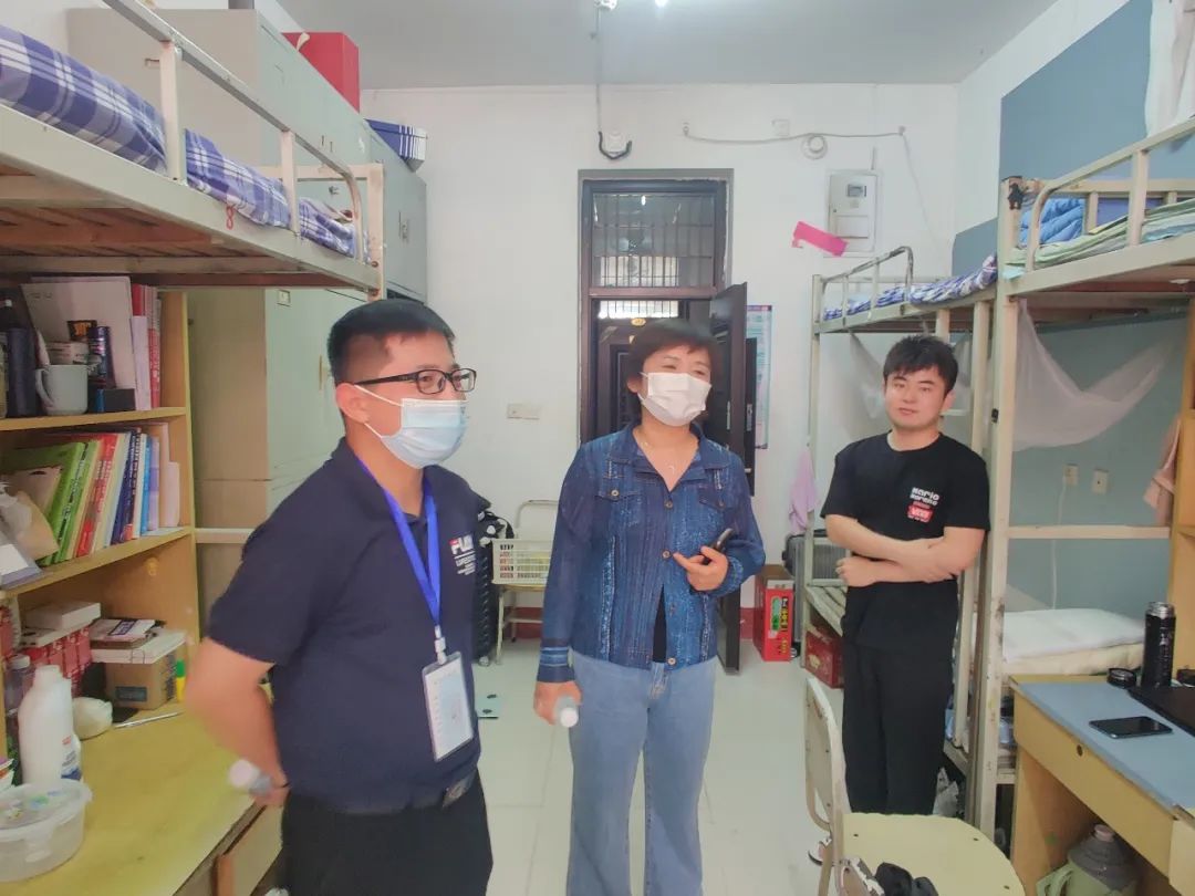 在疫情反复的态势下,为给学生们带来我院的关心、家的温暖,并及时了解学生的思想动态、适应情况及宿舍卫生安全状况,以确保后续各项工作的有序、平稳开展,保障学生的身体健康与生命安全,我院党委副书记李谨辰、辅导员老师赵相博及班主任于5月27日走访我院学生宿舍。