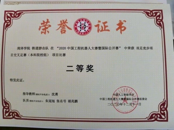 2020年11月,获中国工程机器人-等奖两项,二等奖一项,三等奖两项。