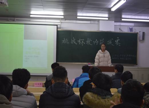 (通讯员 穆雪超)12月27日,第十七届“挑战杯”菏泽学院校内选拔赛决赛在机电楼316、416教室举行。校团委书记祝磊、我院党委书记袁冬梅、副书记田丰莅临比赛现场,我院杨桂林、侯建华、周景雷、祝凤金老师和物理与电子工程学院赵光辉、孔令杰老师担当本次比赛评委。