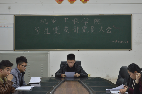 11月29日下午,我院在机电楼406会议室召开学生党支部党员大会。院党委副书记田丰、党政办公室主任徐先战、学生党支部委员、班主任及全体学生发展对象参加。