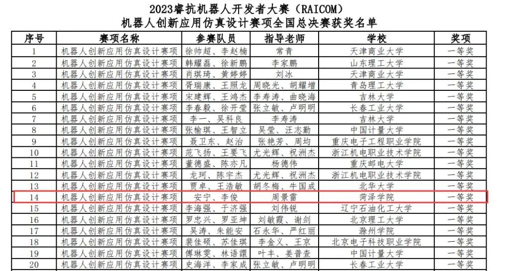 近日,2023睿抗机器人开发者大赛全国总决赛落下帷幕。机电工程学院学生李俊、安宁组成的“TCP队”与来自吉林大学、北京理工大学、中国计量大学、天津工业大学、太原理工大学、山东理工大学、贵州大学等200多所高校2000多支参赛队伍激烈角逐,最终脱颖而出,荣获2023睿抗机器人开发者大赛全国总决赛一等奖1项、二等奖1项。
