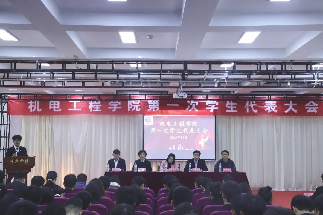 为进一步推进学生工作开展,解决同学们在学习生活中遇到的问题,提升学院学生管理和服务水平,引导广大同学自觉把个人理想融入到党和人民的共同奋斗之中。2023年11月13日下午,菏泽学院机电工程学院第一次学生代表大会在体育馆报告厅顺利召开。大会正式代表、列席代表共60余人参加大会。校团委副书记王盛楠、机电工程学院党委书记祝磊、机电工程学院党委副书记李谨辰、机电工程学院副院长崔国涛以及全体辅导员老师出席大会。大会由机电工程学院学生干部梁坤主持。