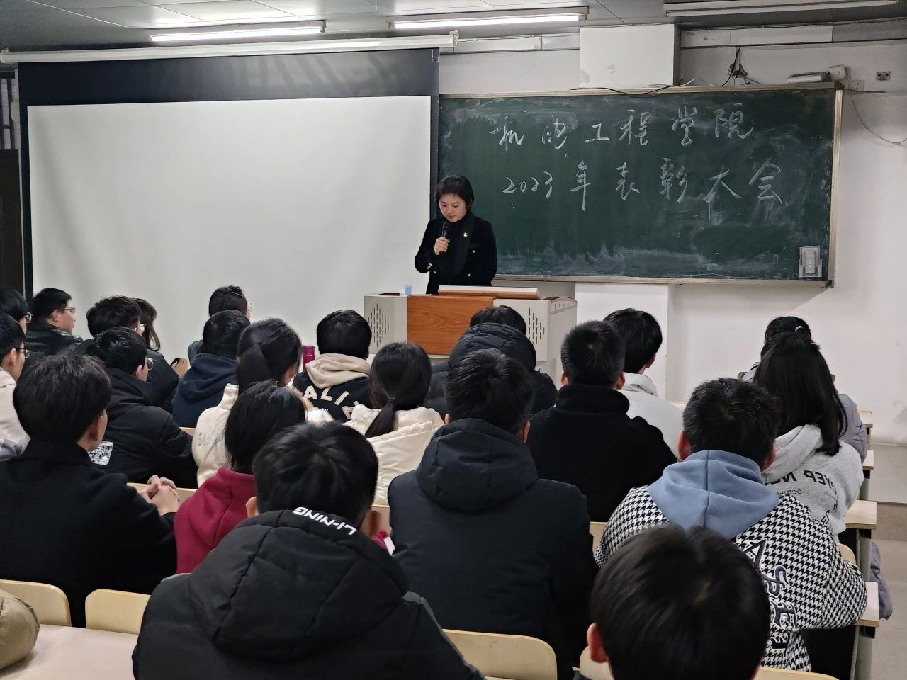 为表彰先进典型,凝聚新时代榜样力量,营造积极向上的育人氛围,发挥榜样的模范带头作用,2024年1月3日下午,机电工程学院于机电楼416教室召开2023学年度表彰大会。院党委副书记李谨辰,辅导员老师仵晓晗、赵相博、崔肖雪、邬瑜锦、陈传阳、崔鲁杰出席活动并为学生颁发证书及发放获奖红包。