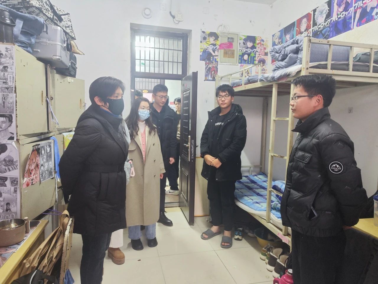 为深入了解学生返校后的情绪状态变化,检查宿舍的安全卫生状况,鼓励大家调整好学习状态,以饱满的精神状态迎接新学期的到来,2024年2月26日下午,我院党委副书记李谨辰带领全体辅导员老师在第一时间深入学生宿舍,为学生们送去新学期的关怀与慰问。