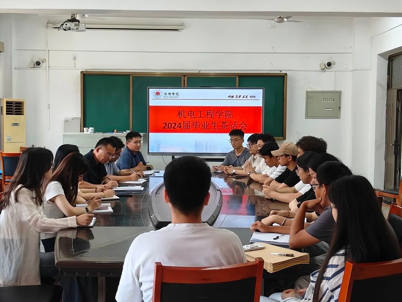 为进一步了解毕业生考研、就业情况,加强学院与毕业生之间的交流沟通,听取毕业生的建议,进一步改善和发展学院各项工作,6月17日上午,机电工程学院于机电楼406会议室召开2024届毕业生茶话会。机电工程学院院长江峰、党委副书记陈凌云、副院长李忠广、辅导员赵相博、邬瑜锦、崔鲁杰以及学生代表参加了此次会议。