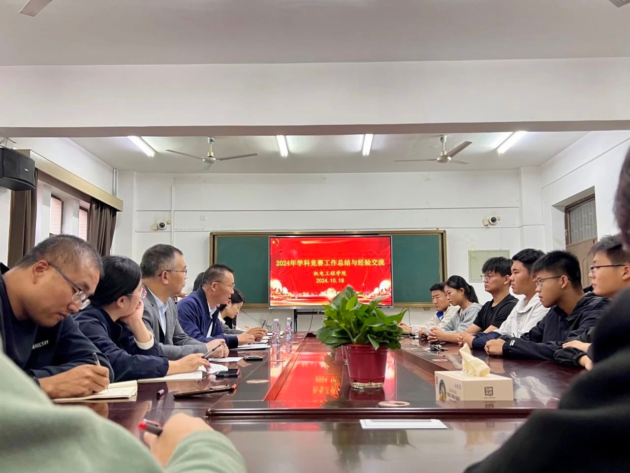 为总结近期学院学科竞赛的成果与经验,为未来的竞赛活动进行规划与准备,10月18日下午,机电工程学院于机电楼406会议室召开学科竞赛工作总结与经验交流会。机电工程学院院长江峰、党委副书记陈凌云、副院长李忠广,各专业教师代表以及学院实验室全体成员参加了此次会议。