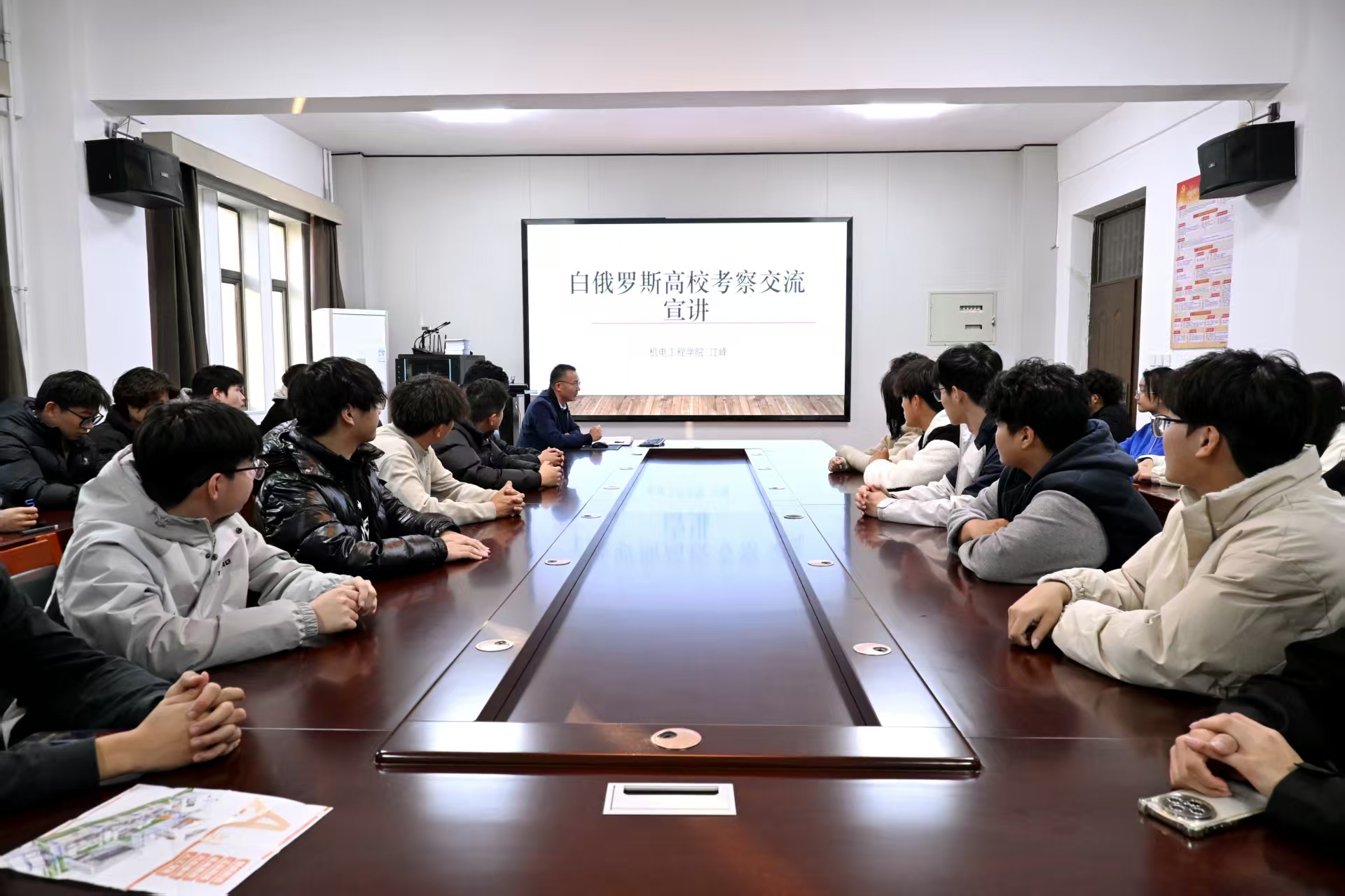 为拓展学生国际视野,推动人才培养国际化,11月3日下午,机电工程学院在机电楼406会议室举办白俄罗斯高校考察交流宣讲会。会议由学院院长江峰主讲。