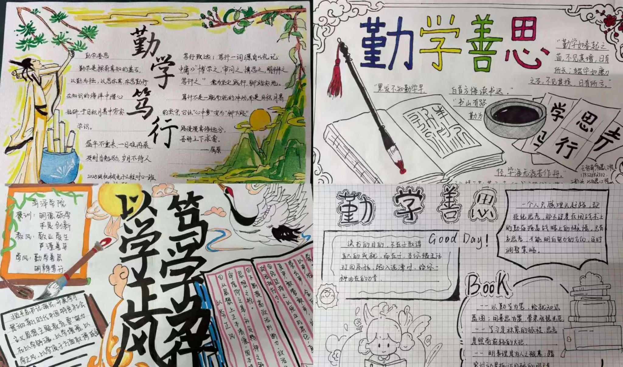 同日,学院社团部组织“一纸一墨承学风,一笔一画润初心”手抄报主题活动。活动得到同学们的积极响应,参赛作品形式多样、内容丰富,笔墨之间既展现了创意才华,又体现了对学风建设的深刻理解。该活动不仅深化了学生对学风内涵的认识,提升了学生的创意表达能力,更使优良学风以具象化的形式深入人心,有力推动了学风建设工作的深入开展。