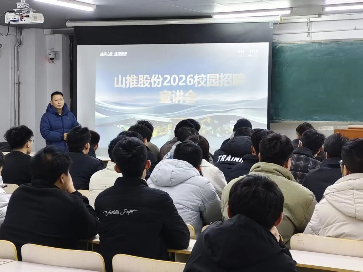 为进一步深化校企合作,拓宽学生就业渠道,搭建企业与学生之间沟通交流的优质平台,机电工程学院于2025年12月22日下午在机电楼416教室成功召开山推股份有限公司校园宣讲会。此次宣讲会吸引了众多我院学子积极参与,现场气氛热烈非凡。