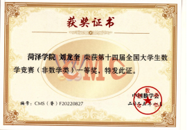 具体获奖情况及证书如下