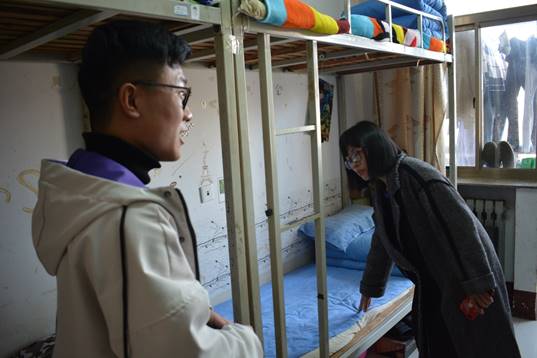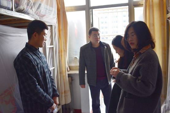 3月14日下午,我院党委副书记田丰、学生工作办公室主任陈伟、辅导员孙亚梅和李亚南深入走访了学生宿舍。