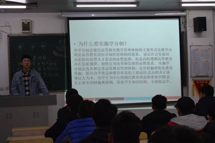 为了进一步落实学校关于开展“学分制宣传教育稳妥推进学分制改革”的要求,使师生熟练掌握学分制的有关管理规定。我院于3月10日晚,在机电楼各班自习室开展“学分制学习宣传教育”主题班会,班会由各班班主任、班干主持。
