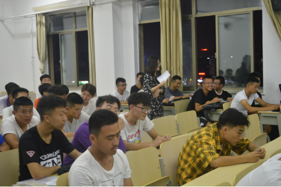 会上,各班同学通过所在城市、兴趣爱好等方面进行自我介绍以增加学生与学生之间、学生与老师之间的熟知度。各班班主任在学生自我介绍后进行发言。对口班班主任孙亚梅引用路遥“人生的道路虽然漫长,但紧要处常常只有几步”的话来比喻大学四年是人生重要的一步,时间虽长但在整个人生之中是短暂的,要学习知识、磨砺自己、成就自己,让这四年变得精彩丰富。石爽老师向同学们介绍了我校近些年的发展情况和本专业就业方向,并希望同学们在军训期间树立自己的目标,合理规划大学生活。最后各班班主任留下了联系方式,以便对学生的专业学习与职业规划作长期指导。