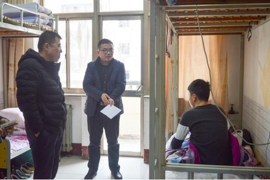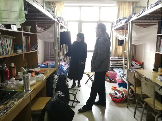 (通讯员 葛胜男)3月5日下午,院党委副书记田丰,学生工作办公室主任陈伟,辅导员柳杨、孙亚梅、李亚南,班主任龚长青、任国军共同在新学期第一天走访学生宿舍,看望寒假返校学子,并带去关心与问候。