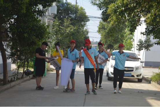 (通讯员 朱启珍)7月20日,机电学院青年志愿者服务大队到牡丹区刘庄新村张贴城市文明标语,活动由团总支书记杨冬老师带领。