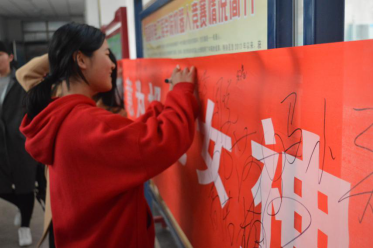 3月6日--7日,“横幅展示”、“爱心签语”等活动陆续开展,女生们纷纷在心愿卡上写下自己心里的愿望,男生们则领取走承载女生心愿的卡片,帮助女生实现她的愿望。同学们积极参与,将女生节推向了又一个高潮。