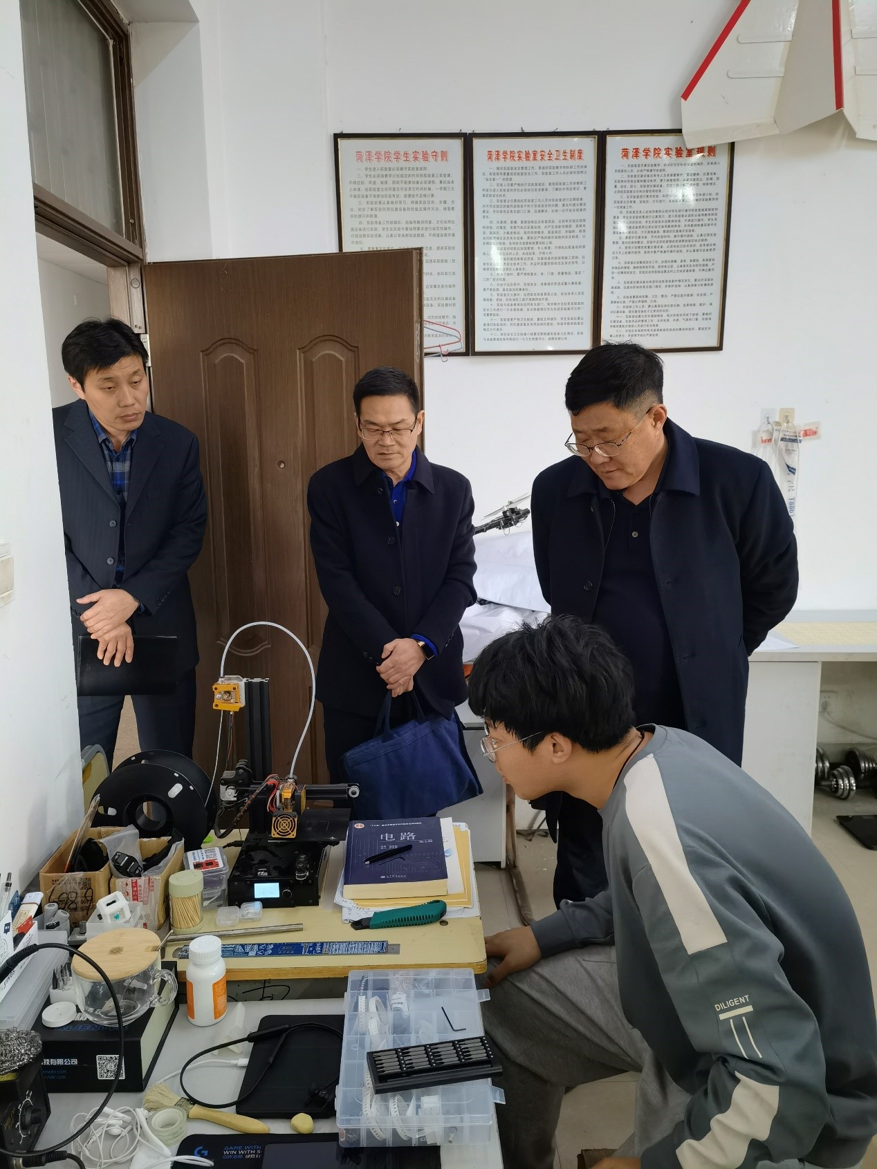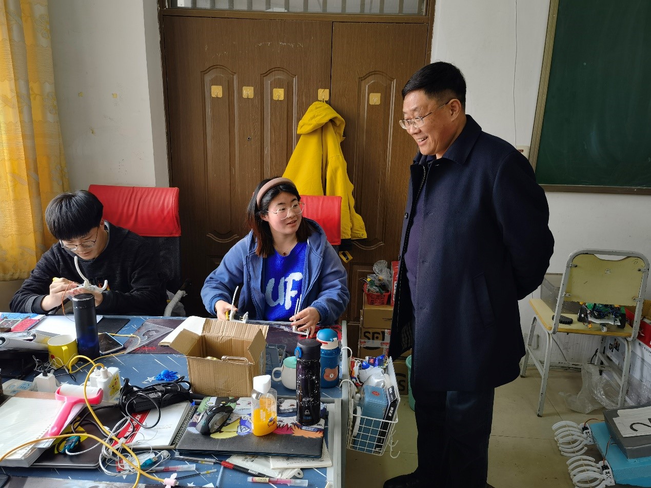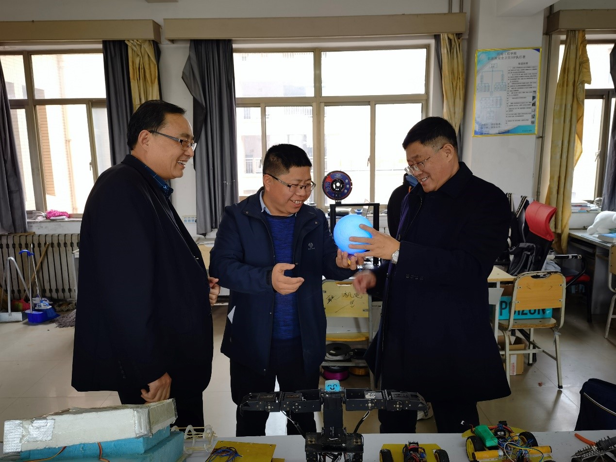 新学期伊始,在我校“十四五”全面开局和加快应用型本科高校建设的关键时期,党委书记衣玉琛同志在学校党委办公室主任武尚民同志陪同下,3月4日下午分别来到机电工程学院产品创新室、机器人创新设计训练室、电子创新设计室进行工作调研。
