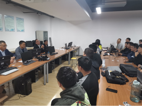 10月26日下午,李振武院长一行五人抵达企业驻地后,第一时间到教室看望第一批三个校企合作专业五十余名实习同学,并召开师生座谈会。首先,李院长亲切询问了同学们近期学习、生活的情况,并一一给出细致的指导;其次,三个系的系主任分别针对本系学生进行了座谈,详细了解了学生实训课程的设置、毕业设计选题、就业推荐工作等情况,并一一回答了同学们关于毕业、论文写作等方面的问题。10月27日上午,在企业会议室,李振武院长一行就学生座谈会所提问题以及企业派往学校任课教师情况、毕业设计指导工作、协同育人项目结题等问题进行反馈,双方就目前存在的问题进行了深入的交流并交换了意见。