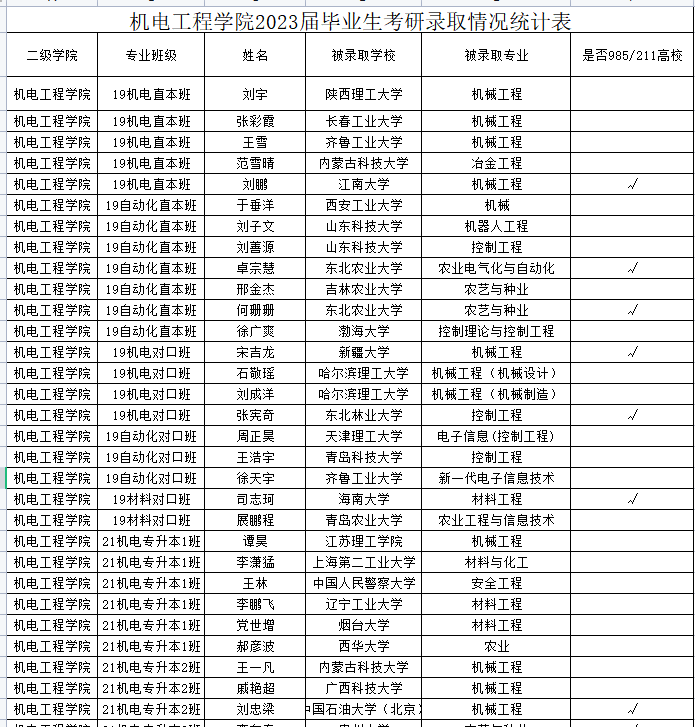 星光不负赶路人,天道酬勤佳音来。在2023年全国硕士研究生招生考试中,截至目前,机电工程学院有53人被录取。漫漫考研路,他们坚信没有到不了的彼岸,更没有行不至的远方。前路浩浩荡荡,让我们一起祝贺他们!同时勉励后届考研学子继续努力,争取更大辉煌。