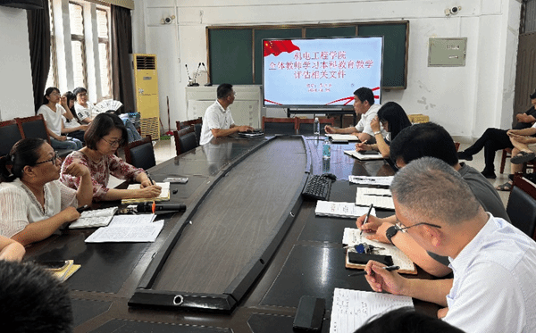 为切实做好本科教育教学审核评估工作,全面推进学院内涵建设,提高本科教育教学水平和人才培养质量,机电学院在6月20日组织教师认真深入学习《菏泽学院本科教育教学审核评估工作方案》,又于6月28日召开全体教职员工会议,对《新一轮本科教育教学审核评估42问》、《普通高等学校本科教学工作审核评估一点通》两份材料进行了学习,使全体教师明确目标、统一思想,上下同心、狠抓落实,以饱满的热情、昂扬的斗志、扎实的作风全力投入到评建工作中去。