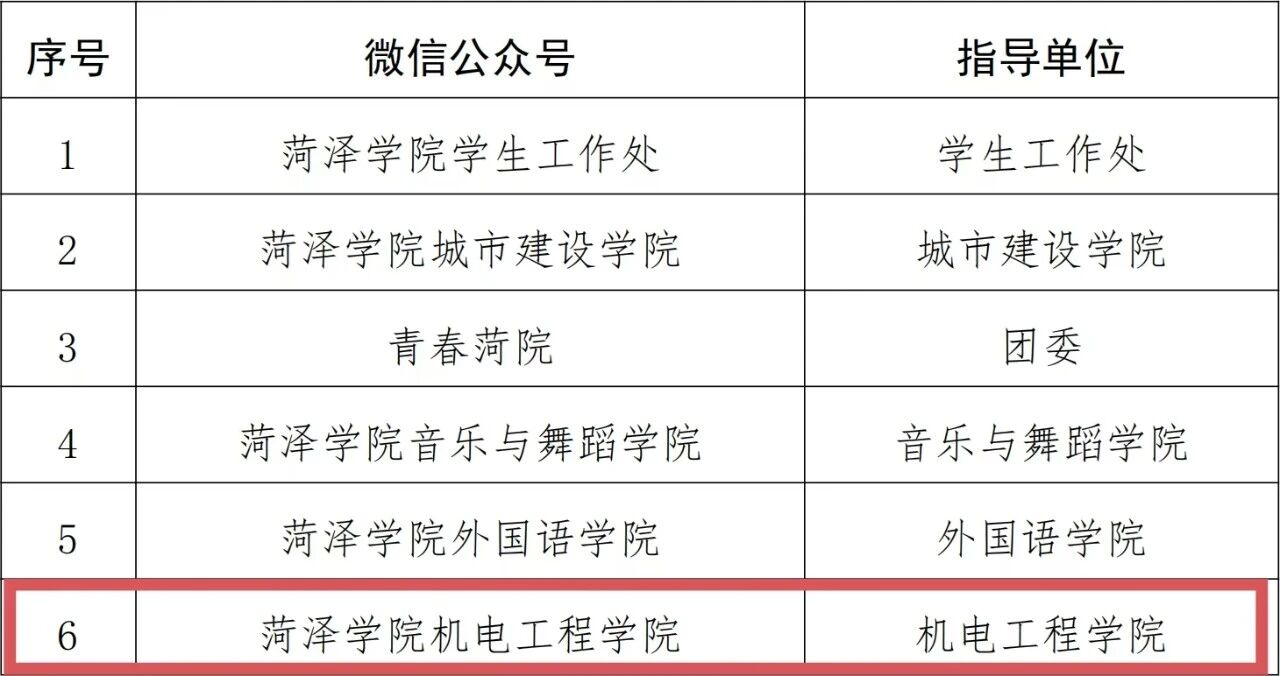 近日,学校开展了2025年度菏泽学院“十佳微信公众号”评选活动。经各单位申报,结合传播指数、网上投票等情况,机电工程学院微信公众号荣获2025年度菏泽学院“十佳微信公众号”称号。