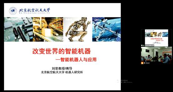 北京航空航天大学刘荣教授随后做了题为“智能机器人与应用”的报告。报告分别介绍了人工智能与机器人的发展应用,得出机器人是人工智能完美搭档的结论;展示了目前国内外智能机器人的发展现状以及北京航空航天大学机器人研究所的机器人研究成果。